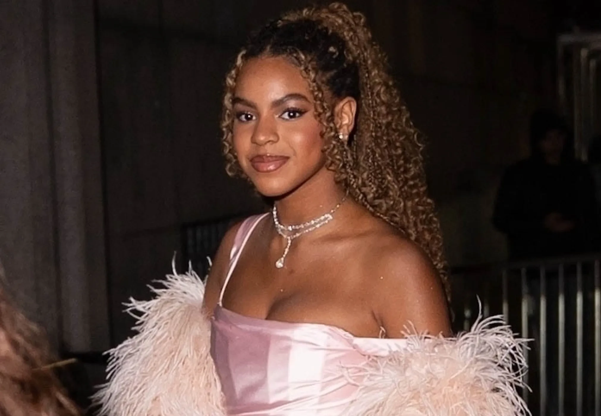 13-летняя дочь Бейонсе вышла в свет в платье с декольте и перьях